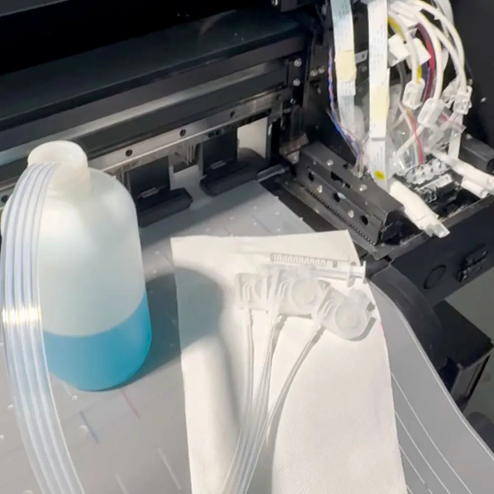 - Compatibilité : Peut être utilisé sur des équipements avec des têtes d’impression utilisant des encres DTF.