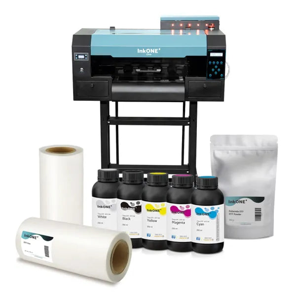 Le Pack Imprimante InkOne DM4 DTF - 35 cm (film + encres + colle polyamide) comprend tout ce dont vous avez besoin pour imprimer des transferts personnalisés avec la technique DTF. C'est une machine de bureau puissante et compacte, idéale pour les utilisateurs intermédiaires souhaitant optimiser leur flux de travail et maximiser la productivité. Avec sa double tête d'impression Epson i1600 et un système avancé de recirculation d'encre, cette imprimante garantit des résultats vibrants et de haute qualité pour chaque projet.